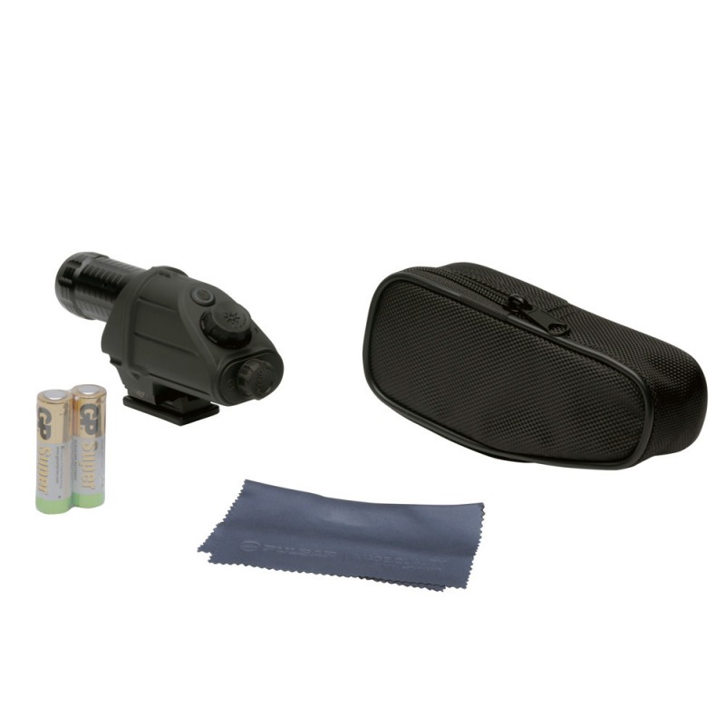 Use the side-mounted Pulsar AL-915 IR Laser Illuminator to enhance the effectiveness of your digital night vision device. This compact and lightweight illuminator features an infrared laser diode to provide a tight and bright spot on your targets in very low light or total darkness. The illuminator features a clean beam spot, variable brightness, vertical and horizontal beam position adjustments, and flood-to-spot focusing. It is optimized to work with digital night vision devices and may be used as a counter-measure against intensifier tube NVDs because its wavelength is outside of their peak sensitivity. To obtain the best illumination, this device should be mounted on the side of your night vision device via Weaver rail.