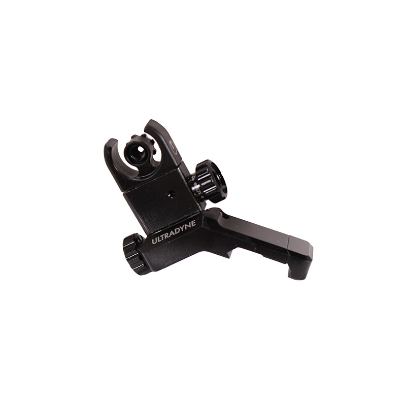 The Ultradyne C4 Flip-Up Rear Sight utilizes Ultradyne's exclusive dynalign sight picture technology for accurate and immediate acquisition. Most BUIS systems utilize a sight picture that is non-intuitive. In such systems, the brain's visual systems are asked to align a circular rear aperture with a rectangular front post shape while simultaneously ignoring the 'ears' that protect the front sight post. Dynalign's circle-within-circle sight picture allows for faster sight picture acquisition. Additionally, the use of a front aperture further reduces parallax effect which makes accuracy less depend on precise sight alignment. Dynalign is a faster and more accurate sight picture than can improve shooting performance.