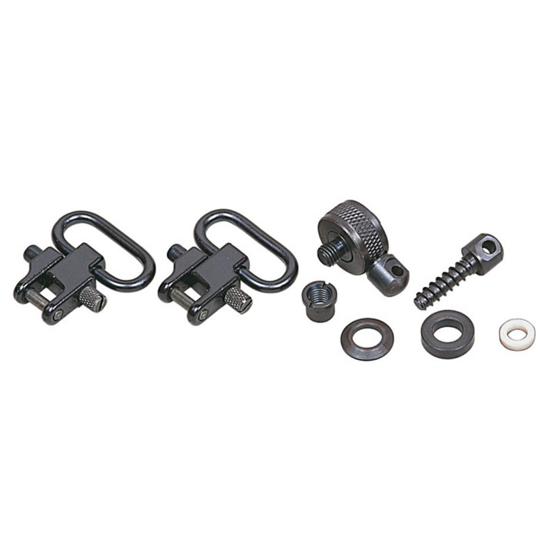This swivel set comes with 2 Allen Magnum Swivels that fit most pump action and semi-automatic shotguns without hardware installed, and the swivels are designed for slings up to 1? wide. Contains the necessary hardware to install swivels on most pump action and semi-automatic shotguns. A threaded stud designed for installing into wood or synthetic stocks is included for the butt stock attachment. A rotating stud that requires drilling the factory magazine tube cap is included for attaching to the fore end.