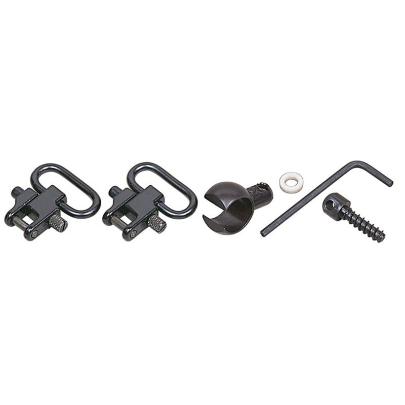 This swivel set includes 2 Allen Magnum Swivels that fit lever action rifles without hardware installed and is designed for slings 1? wide. Contains the necessary hardware to install swivels on most lever action rifles. Includes a threaded stud designed for installing into wood or synthetic stocks for buttstock attachment. A two-piece barrel band swivel stud attaches to the magazine tube in front of the fore end.