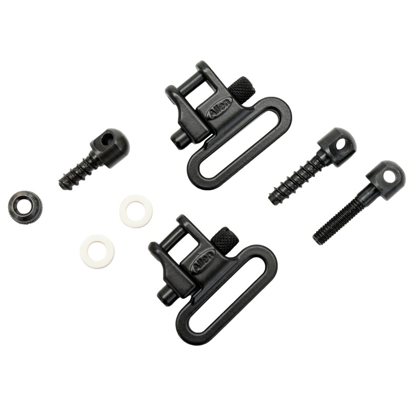 This swivel set comes with 2 Allen Magnum Swivels, is for bolt action rifles without hardware installed, and fits slings up to 1? wide. Contains hardware to install swivels into most bolt action rifles. Designed to work with wood or synthetic stock. Additional threaded screw and nut are included for a secure connection in stocks with thin wood walls or hollow synthetic stocks.