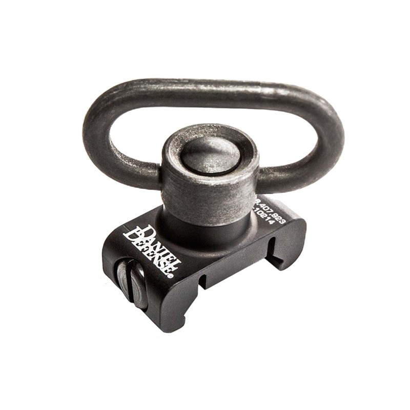The Daniel Defense Rail Mount QD Swivel Attachment Point is designed to allow the operator to mount the popular Heavy Duty Push Button Quick Detach Sling Swivel. This mount allows the operator to mount the swivel anywhere along their rail system. The Daniel Defense Rail Mount QD Swivel Attachment Point has been designed to limit the rotation of the swivel to prevent the operators sling from becoming tangled.