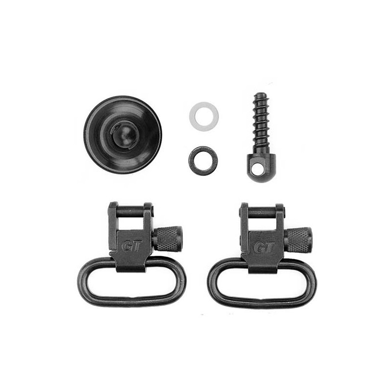 The GrovTec Sling Swivel Set includes mag cap replacement with swivel stud, 3/4" wood screw rear swivel stud and one pair of GT Locking Swivels.