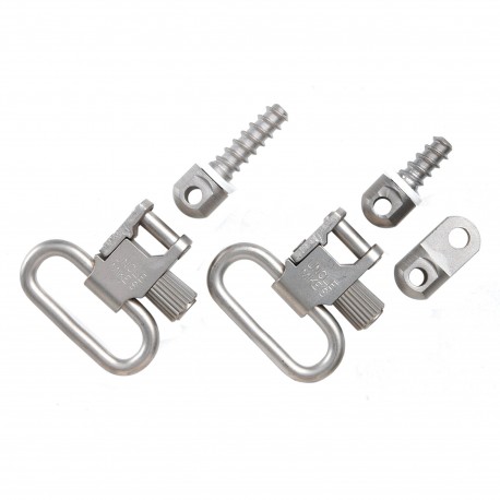 Machine screw fore end base, wood screw rear base. Replaces many factory non-detachable swivels.