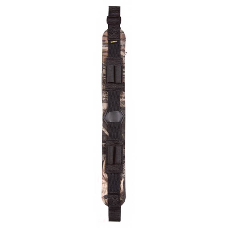 The Yukon Neoprene Rifle Sling has four Elastic Rifle cartridge lood, a thumb ring loop, Heavy Duty Web Construction, and a Neoprene shoulder pad with a soft "Sharkskin" gripping surface. It has the famous breakup camo pattern to help you blend right in.