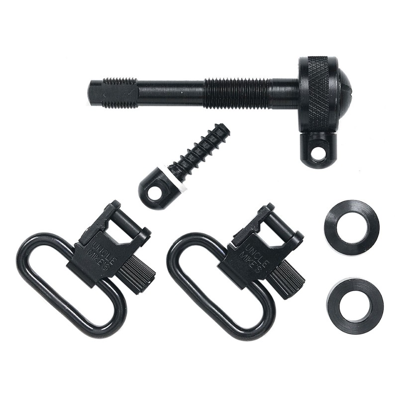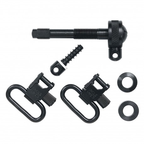 Machine screw fore end base, wood screw rear base. Replaces many factory non-detachable swivels.