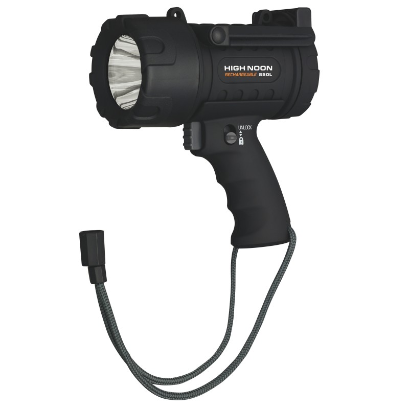 Bright, built for the field, and within your price range. High Noon spotlights are durable, waterproof, and they float. You can take them anywhere on land or the water, and know that they'll function when you need them most. The High Noon Rechargeable spotlight ups the ante, with an included rechargeable battery that almost doubles the light output over the standard model. It casts a focused beam of high-intensity light over a great distance, and the comfortable pistol style grip helps you point the light natural and hold it steady.