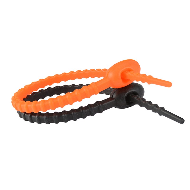 These Snake Ties are fun, flexible, reusable, silicone zip-ties that are perfect for attaching or bundling lightweight gear. Just insert tail into locking head and pull to desired tightness.