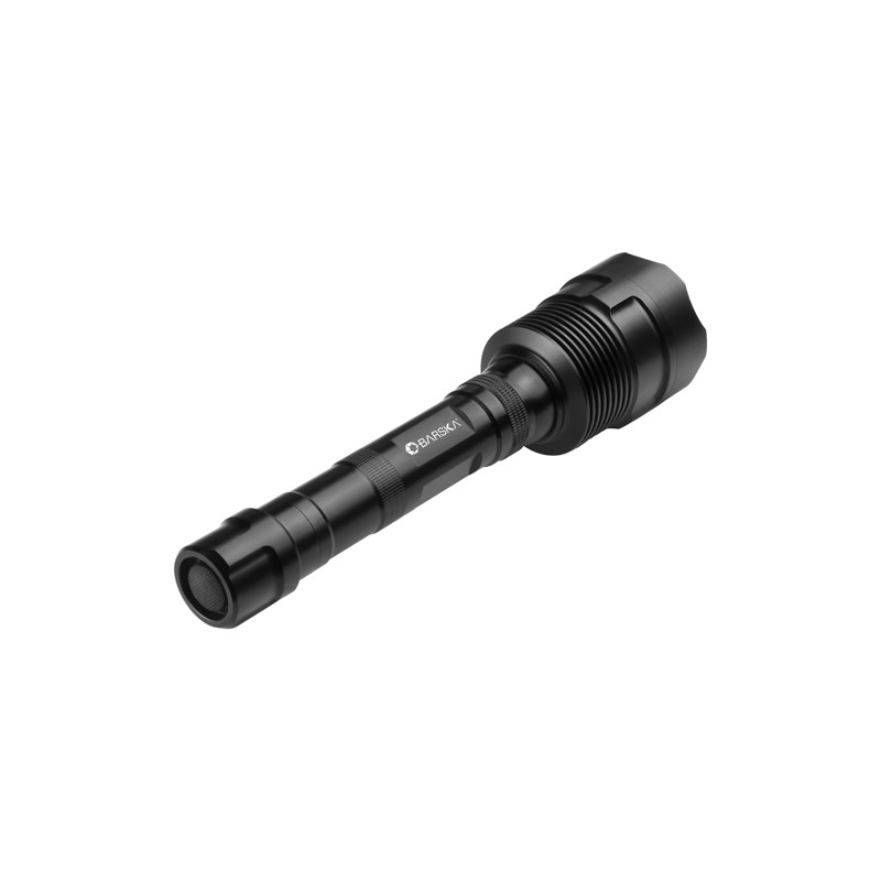 The 2000 Lumen FLX Flashlight by Barska emits an intense bright white beam of light that can be seen for miles. This powerful light comes with rechargeable batteries and battery charger, and can last for hours on a single battery charge. Designed for military and law enforcement, this flashlight is designed to be shockproof and able to withstand use as a tactical defense tool. Functional as a weapon for safety, this flashlight features a strobing light mode to momentarily blind an attacker. It also features an SOS rescue light pattern, tactical accents, pressure sensitive push on off button and beveled edge for added protection. Includes charger and three 18650 rechargeable batteries.