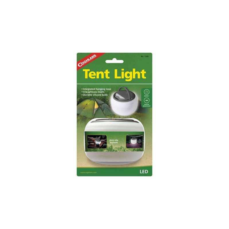This bright 120 Lumen LED provides 360 light diffused through a soft silicone lantern shell. With up to 40 hours of run time and 4 brightness levels the Tent Light will cast a comfortable glow inside a tent or around the picnic table. The handle features a split loop so that it can be hung from anywhere. Made from a durable silicone material so that it can survive bumps and falls.