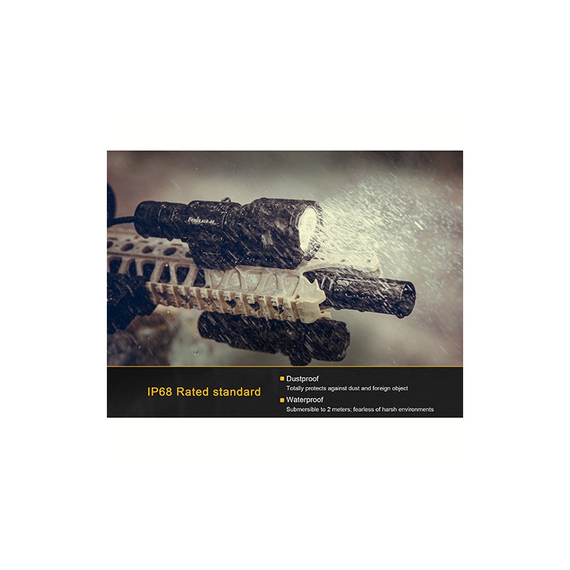 The TK25 Red is powered by a single 18650 rechargeable battery (sold separately), yet can also be powered by two CR123A batteries in a pinch providing users with multiple power options during long hunting trips or travel. The durable high-strength and oxidation-resistant aluminum construction of the flashlight ensures the light is protected from outdoor elements like rain, snow and dust.