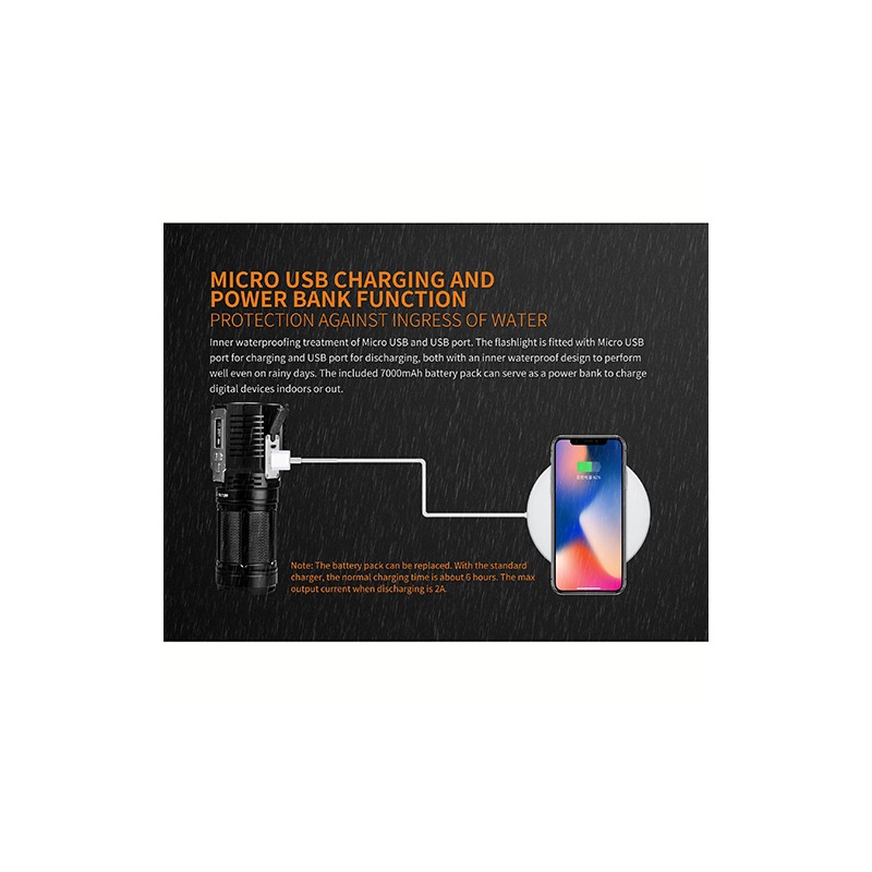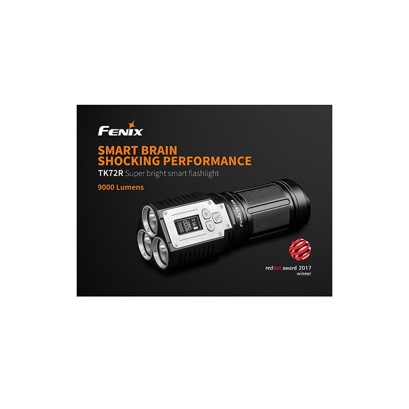 Fenix' brightest flashlight is out! Welcome the Fenix TK72R! This bright flashlight features 9000 lumens! The Fenix TK72R is a micro USB rechargeable portable high performance flashlight - a brilliant aid for night outdoor searching and rescuing and industrial tasks. The TK72R features an OLED display with advanced intelligent circuit design that clearly shows the current lumens, remaining battery level and runtime. With this information, you can plan and prepare for your nighttime outdoor journeys and activities well in advance. The Fenix TK72R will illuminate the road and help ensure safety outdoors.