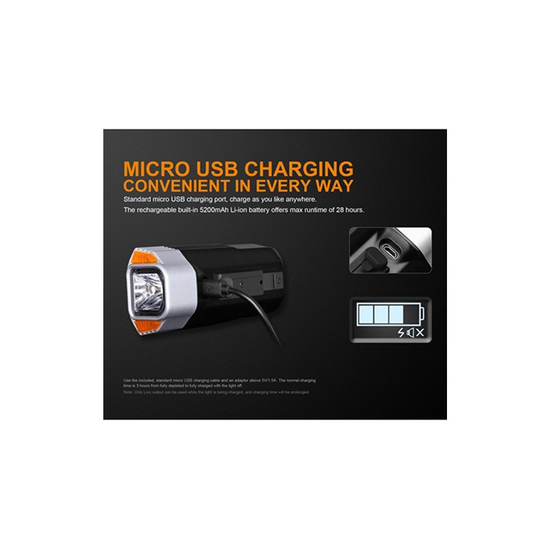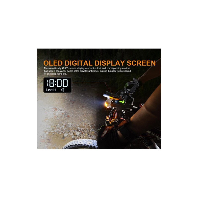 The Fenix BC35R is a USB rechargeable bike light specifically built for the urban environment. This light features an innovative visual cut-off facula line which blocks off the top of the light beam so you wont blind oncoming traffic. The OLED screen displays current output and corresponding runtime so you are constantly aware if the lights status. Built-in anti-theft device that smartly monitors users bike movement that will set off an alarm. Additional features include built-in 5200mAh Li-ion battery, USB rechargeability, and remote pressure switch operation.