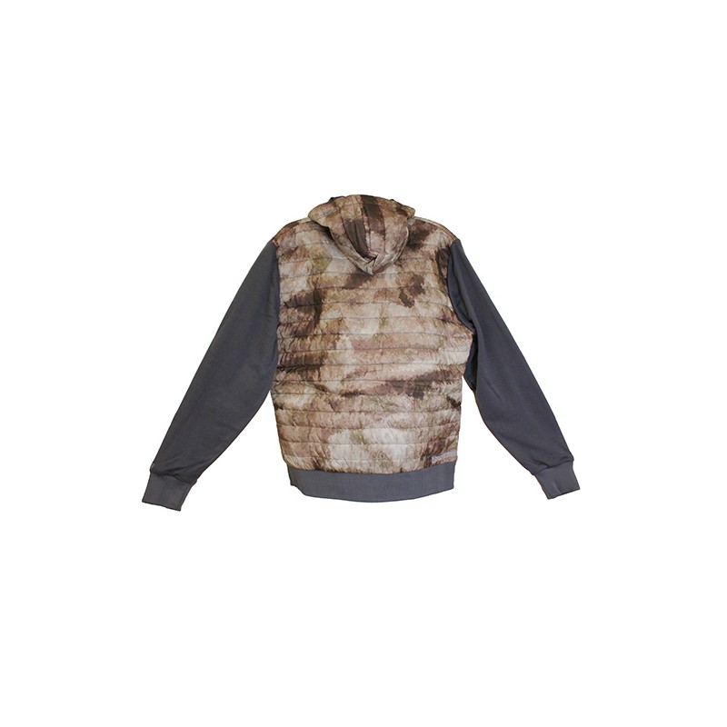 Your favorite hoodie. A fantastic hybrid hoodie featuring water and wind-resistant insulated material with stretch polyester sleeves for flexibility.