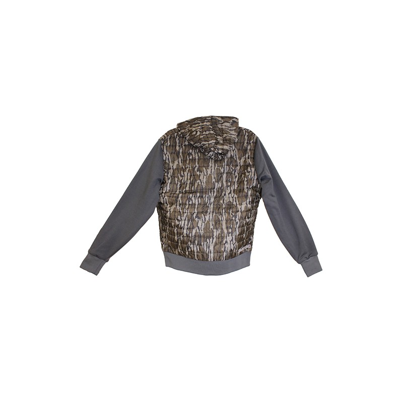Your favorite hoodie. A fantastic hybrid hoodie featuring water and wind-resistant insulated material with stretch polyester sleeves for flexibility.