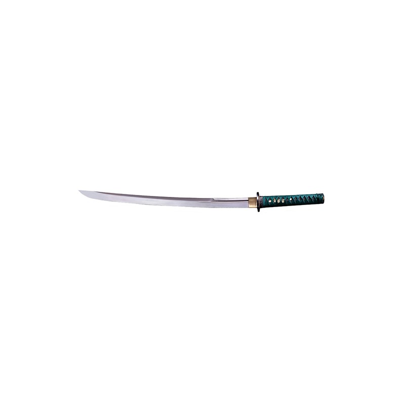 - Handle: 9 1/2" Samé (Ray Skin) Handle with Teal Green Cord with Brass Menuki