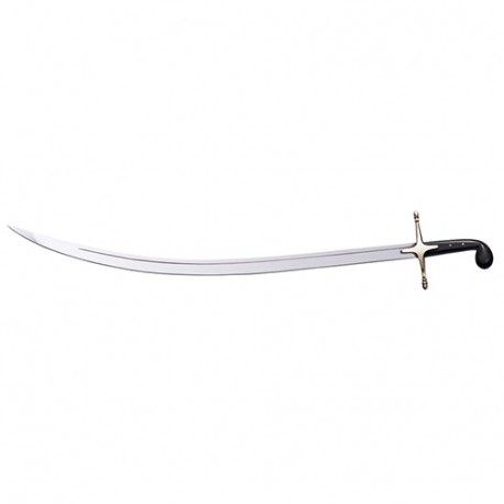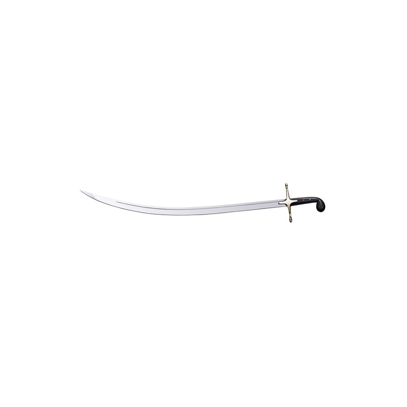Typically, the curved Shamshir blade had a narrow cross section and a sharp point. It had a simple brass or steel crossbar hilt and an equally straightforward handle made from wood or animal horn that terminated in a distinctively bulbous pommel. This pommel was offset slightly to help the hand resist centrifugal force when making a hard cutting stroke.