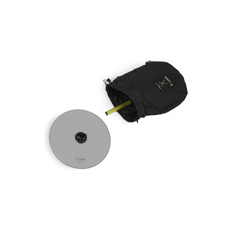 Helinox Table O, "Table in the Hand", GraySpecifications:- Color: Gray- Weight: 0.6 lbs.- Diameter: 10.4"- Height is: 15.4" off ground- Packed Size: 11.4" x 18.5" x 1.2"- Capacity: 4.0 lbs.