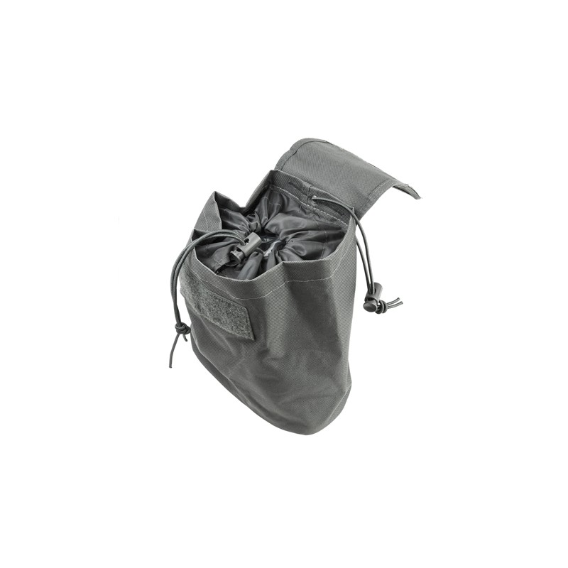 A Large Adjustable Elastic Draw Cord Opening allows easy access into the pouch. With the Elastic Draw Cord pulled in it helps secure the contents into the pouch. Velcro Flap to secure contents inside the pouch. A 2nd Elastic Draw Cord to secure the Velcro Flap out of the way of the Opening for easy access into the pouch. The Dump Pouch has two PAL Straps on the back side to secure onto MOLLE Compatible Gear.