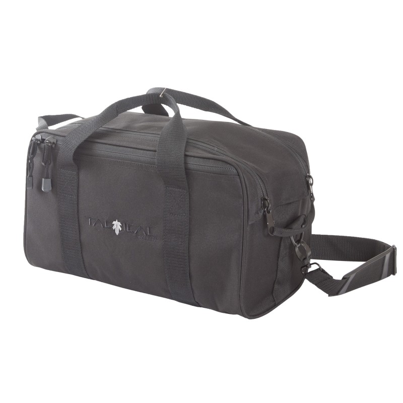 The Allen Tactical Sporter Range Bag is a 1350 cubic inch bag that includes two removable handgun rugs. This range bag features large external accessory pockets, an external MOLLE web system, and a dual zipper opening, as well as a removable shoulder strap. Rugged Endura fabric construction. Dimensions: 15? x 10? x 9?.