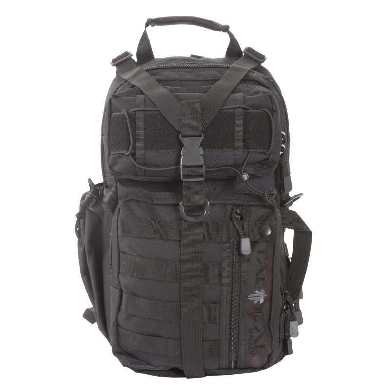 The Lite Force Tactical Sling Packs sling design gives access to the pack without having to remove it. Conceal carry compatible and hydration ready, this pack has a 1200 cubic inch capacity, MOLLE system loops, a large main compression strap, and water bottle and sunglasses pockets. Made with rugged Endura fabric, this sling also has a padded carry handle and a padded adjustable single sling strap.
