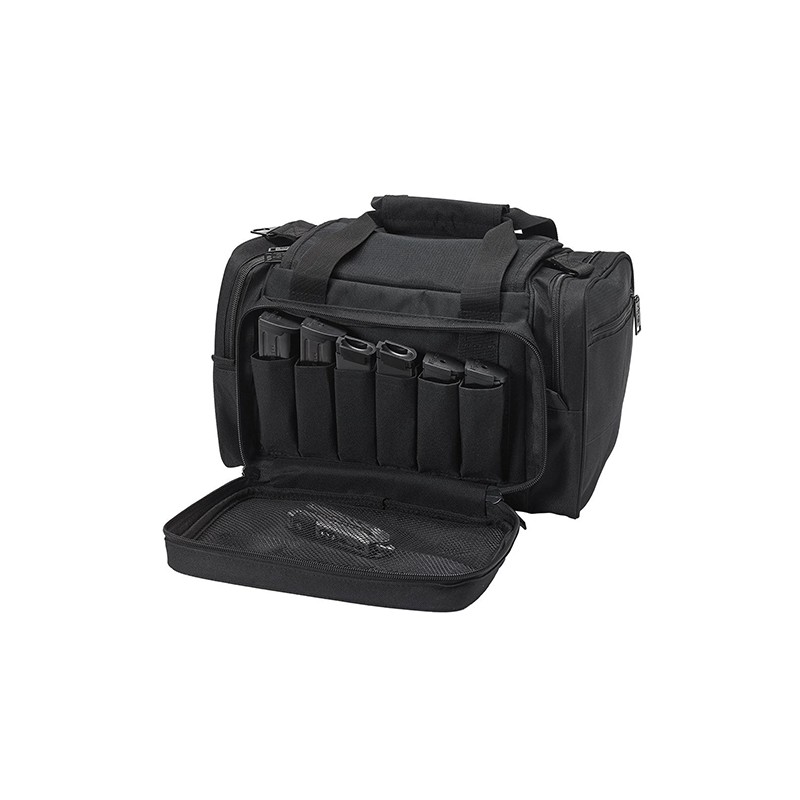 US PeaceKeeper Small Range Bag is a perfect size to carry a couple of handguns to the range. This range bag offers: an internal, padded, zippered pocket, a gun rug insert, multiple exterior pockets and (6) magazine pockets. Front pocket has an interior soft-hook MOLLE wall that accommodates MOLLE and Velcro-compatible accessories.