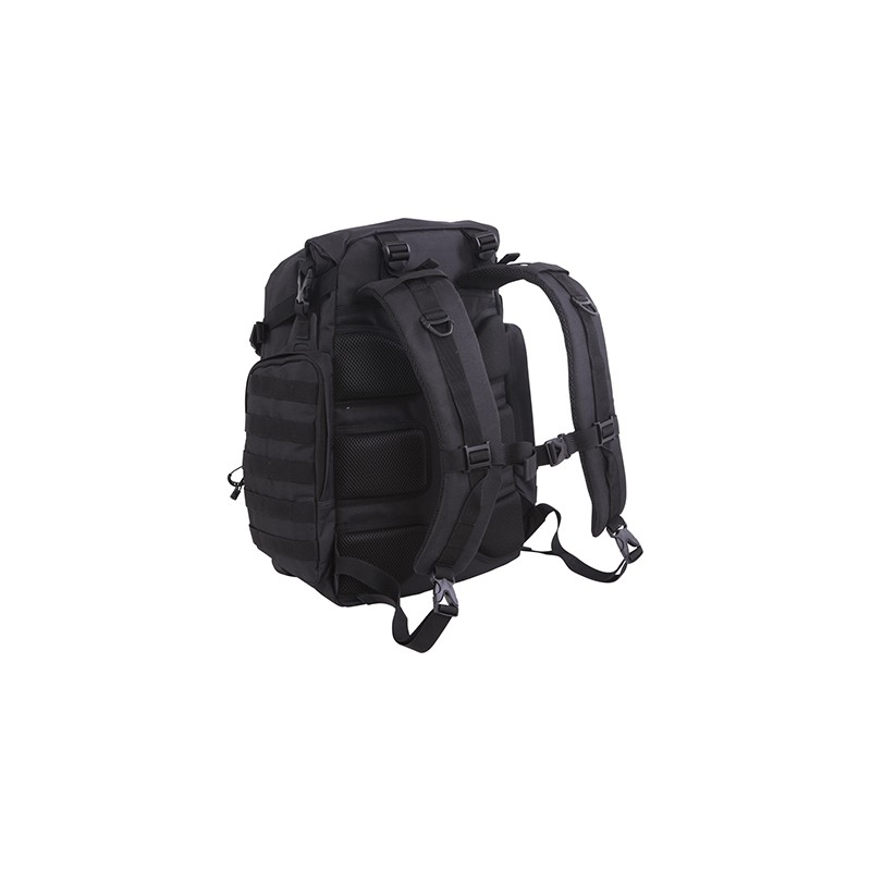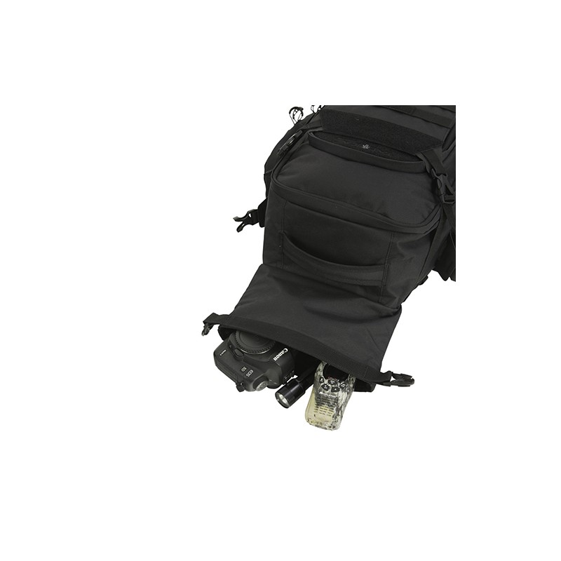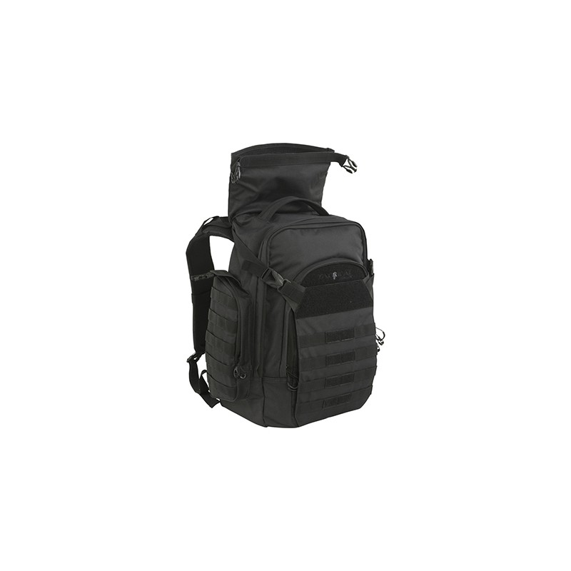 In front of the main compartment is another easy-access area with tons of organization, two more zippered pockets, and dual clips for keys and other items you need to be able to find quickly. A highly water resistant roll-top sleeve sits behind the main compartment and keeps critical items dry. This backpack also features a large compression flap that helps you tighten down the load of your pack quickly and securely. The back of the flap has three large hook and loop sections, so you can attach accessories, like your holster or extra mags. The front of the compression flap has four rows of MOLLE loops and a morale patch so you can customize the pack with your name patch or other patches, plus add as many MOLLE compatible accessories as you like. The two oversized side pockets measure 6? wide x 11? high, perfect for water bottles and more. The outside of the pockets feature 5 more rows of MOLLE loops.