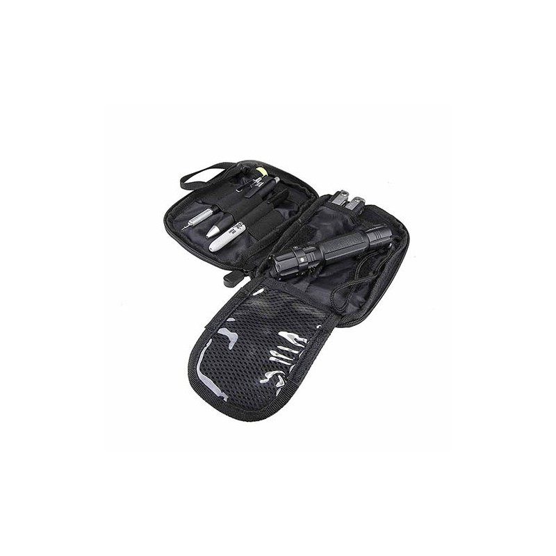- A front 4.5"H X 4.25"W mesh pocket with hook and loop fastener