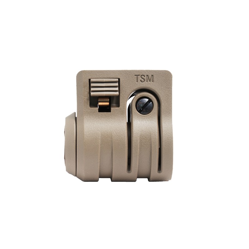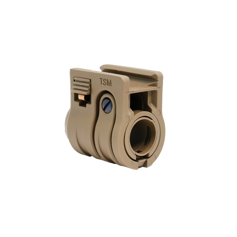 The Torch Standard Mount (TSM) accepts a 3/4, .825 or 1" illumination device. Two large purchase pads allow for tool free quick mounting or reconfiguration on a picatinny rail. This is the illumination mount you want if your objective is versatility for use with multi size lights, ease of movement,speed of reconfiguration, and the lowest profile possible.