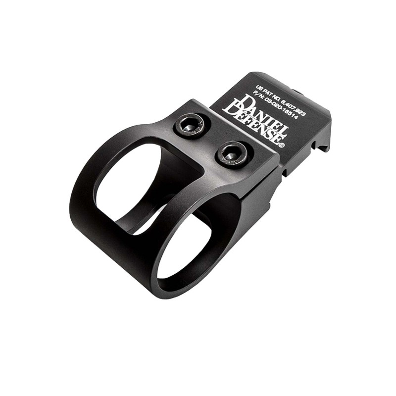 The Daniel Defense Offset Flashlight Mount is designed for use in conjunction with a vertical foregrip which is mounted on the bottom rail. The Offset Flashlight Mount may then be mounted on either side rail for ambidextrous use. It is designed so that as the shooters forward hand grips the vertical foregrip, his thumb has quick and perfect access to the rear button of his flashlight. This setup eliminates many accidental light discharges because although the action to the on/off button is quick and natural, it is also deliberate.