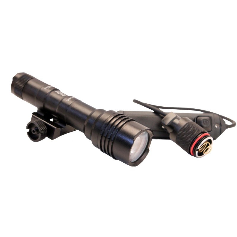 Streamlight Pro Tac Rail Mount 2 dedicated fixed mount long gun light is part of the 6000 series machined aircraft aluminum with anodized finish. The gun light produces 625 lumens of light. It is shock mounted, AR coated, with an impact resistant Borofloat glass lens. The light source is C4 LED technology, impervious to shock with a 50,000 hour lifetime. TIR optic produces a concentrated beam with optimum peripheral illumination. The multi function, push button tactical tail switch or dual remote pressure switch with latching push button turn it on and off. One handed operation of momentary, variable intensity or strobe mode. TEN-TAP programmable switch allows user selection of one of three different programs: high/strobe, high only, or low/high.