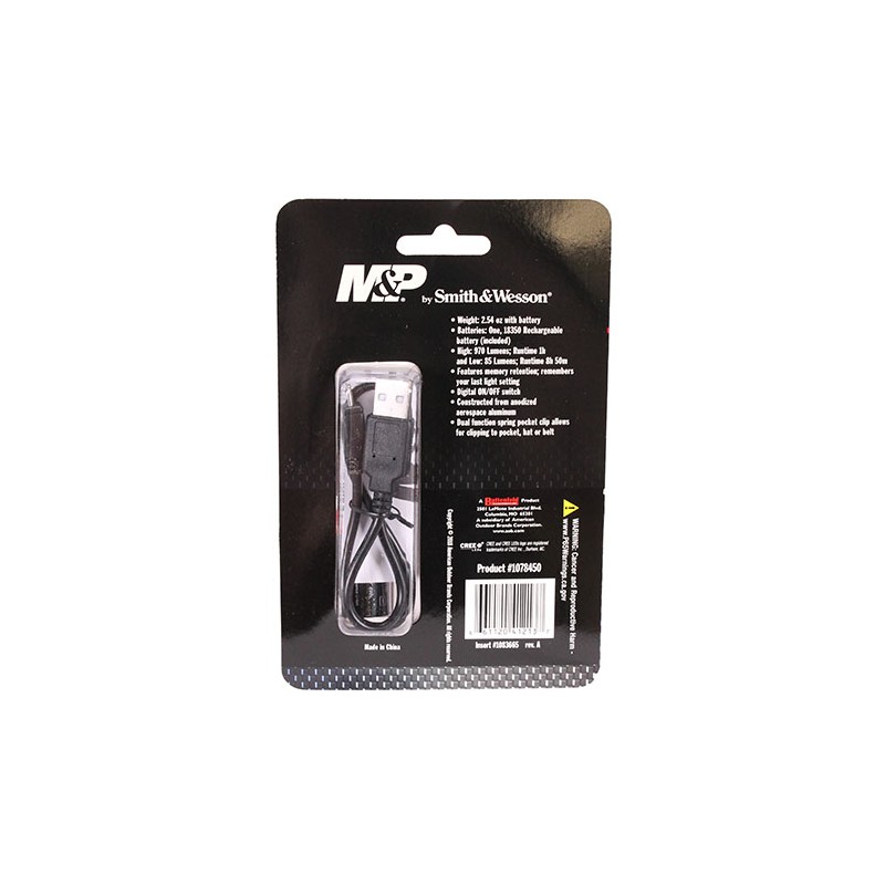 Carry a reliable sidekick with the Smith & Wesson M&P Duty Series CS RXP 1×18350 970 Lumen Flashlight. This rechargeable light has memory retention and 5 mode functions to ensure you have the setting you need. With its compact, anodized aerospace aluminum construction, rechargeable battery and dual-function spring steel clip, this flashlight is always close and ready for any situation.
