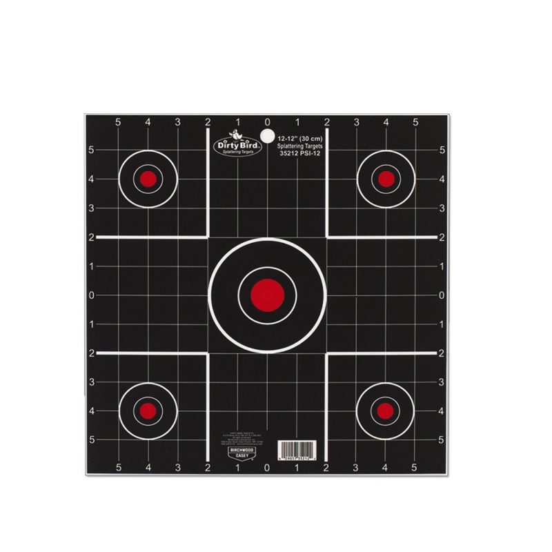 Using this large 12" sight-in target for sighting-in. Five bulls-eye targets come with aiming points for open or scoped sights making it easy to check different ballistic loads for more shooting fun. Complete with 1" grid pattern and stadia lines making sighting-in a snap. The all-around best sight-in and practice target.