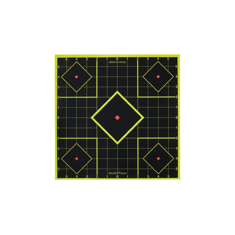 Five targets on each sheet using a center target for sighting-in and four smaller targets for testing results of various ballistic loads or for confirmation of sight-in groups. Convenient 1 numbered grid lines simplify scope adjustments.