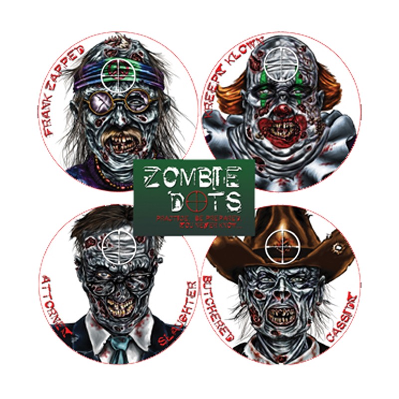 Warning! Zombie Sightings Are Increasing. It's Official! We are all seeing more zombies lately. Just look on your TV. We must begin preparation to combat this increasing menace. It is everyone's responsibility. That's why Zombie Dot Targets are so important. Be Ready! Practice precise bullet placement. For your future, your family and the way of life, please sharpen your zombie stopping skills. Remember zombies are notorious for poor personal hygiene and inadequate social skills. Frankly, nobody likes zombies, so you can shoot at Zombie Dot Targets at any range. Spread the word. Help keep your town safe from the zombie menace. Get your Zombie Dot Targets at responsible firearms and sporting goods dealers.