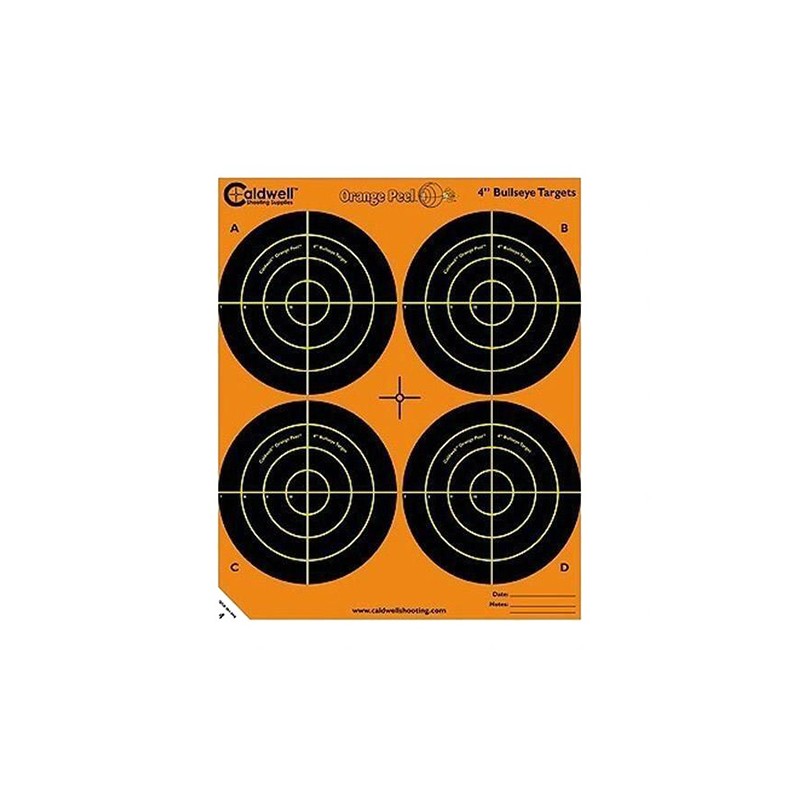Get On Target with Orange Peel Targets by Caldwell! Orange Peels let you see hits ON and OFF the bullseye with dual-color flake-off technology that makes your hits look like colorful explosions. If your shot happens to miss the bullseye, you will know exactly where your bullet strayed...instantly.