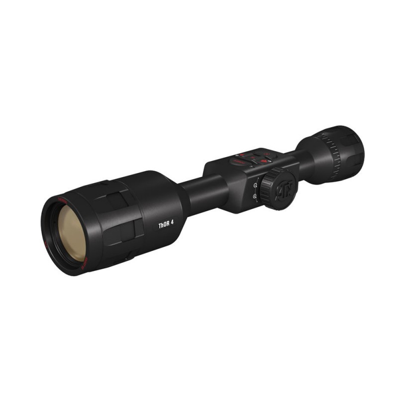 ATN's ThOR 4 384 4.5-18x Thermal Riflescope packs an uncooled thermal array, a color display, and sophisticated electronics with wireless capability into a compact and strong aluminum body that closely resembles a regular riflescope with a 30mm maintube. But besides the form, there is little similarity to a more familiar day telescopic sight. Using this scope not only enables you to seek out your targets during the day or at night, and through fog, smoke, and light obstructions, but provides an opportunity to record and broadcast your activities directly from the scope via a built-in Wi-Fi radio. For instance, its Dual Stream Video capability allows users to stream videos over Wi-Fi and simultaneously record them on an external memory card.