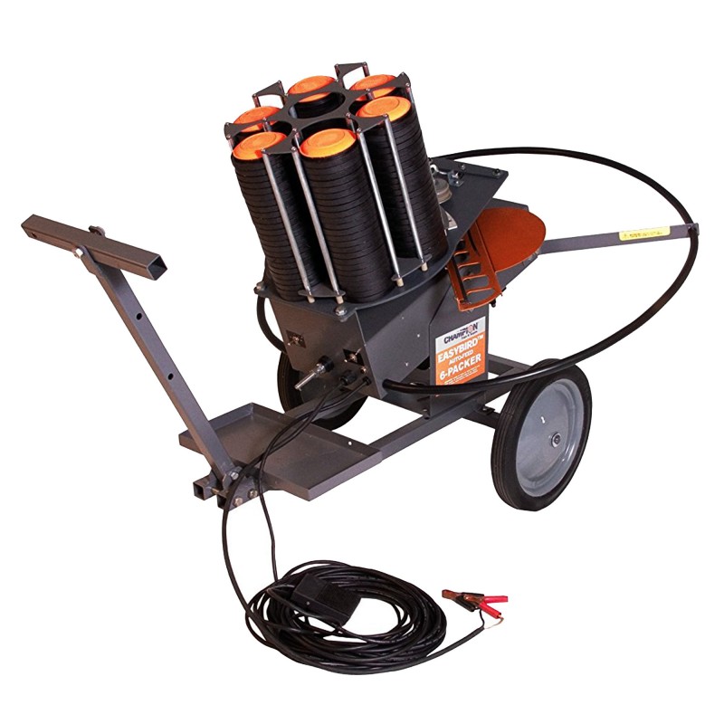 Take your shooting skill to the next level with Champions largest recreational trap. Enjoy the ability to throw numerous presentations with the Easybird Auto-Feed 6-Packer with Oscillating Base. This trap tosses clays fast and smooth and, with a150 clay capacity, holds enough targets for a serious shooting session without the need to refill the magazine.