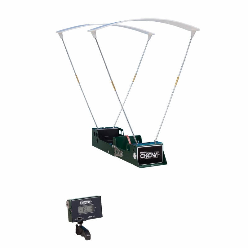 The M1 chronograph is the metric version of the F1, and is calibrated to show readings in meters per second instead of feet per second. The M1 family of chronographs are the entry level champs in the industry. Chronographs can be mounted on a tripod or placed on table for ease of use. The M1 measures a mere 7-1/2x4-1/2x2-3/4" when folded, is constructed of durable 20 gauge steel and yet weighs less than 2-1/2 lbs. The M1 Chronograph uses one 9 volt battery (not included) for up to 48 hours of continuous use, displays numbered shot velocities, and the velocity stays on display until you shoot again. The M1 and the M1 Master are identical except M1 Master has a remote monitor which brings the large LCD up to your bench. A stereo jack is provided on all models for use with an optional Ballistic Chrony Printer (644-359). For indoors, use the optional Indoor Shooting Light Fixture (432-880). Also available from Shooting Chrony is an optional Remote Control ( 286-102).