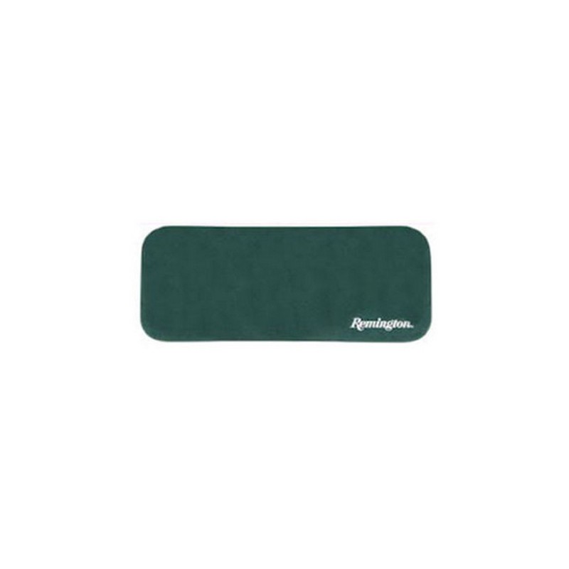 Ideal for use on table tops or benches for easy gun cleaning. Soft, acrylic surface material that won't scratch guns or tabletops and helps keep small parts from rolling away. Absorbent top material traps and holds up to eight times its weight in fluids, while a non-slip vinyl bottom forms a barrier to prevent spilled fluids from soaking through. Remington Green color. Fully machine-washable. Absorbent yet waterproof and stain resistant. Soft acrylic material won't scratch your guns or table non-slip vinyl backing prevents spilled fluids from soaking through. Remarkable, non-woven acrylic material absorbs 8 times its weight in fluids, trapping spills so they won't reach your table. Plush surface stops small parts from rolling away and getting lost works great for other small jobs such as reel repair, toy assembly, etc. Rounded corners for a finished look. Heavy-Duty double-stitched edges will take years of punishment.