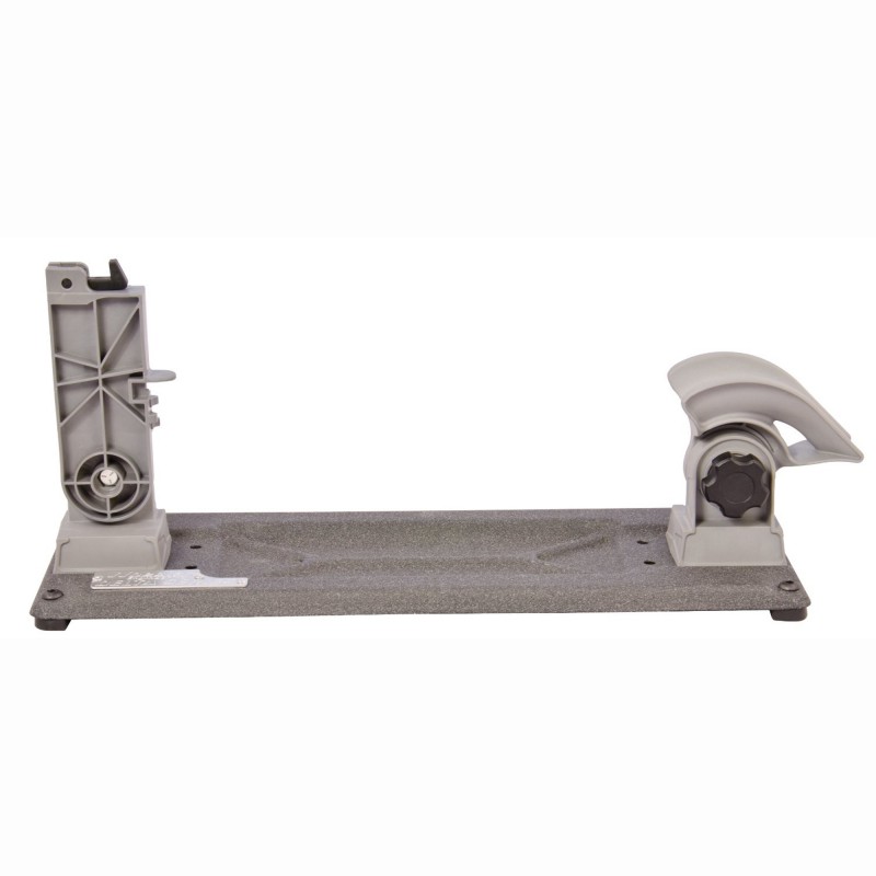 The AR-15 platform has become the mainstay of today's Modern Sporting Rifle market. The popularity and modularity of this platform has created the need for specific tools that allow users to build, maintain and reconfigure AR's. The Delta Series Armorer's Vise provides users an ideal foundation for all AR tasks. The integrated mag well insert securely engages the lower receiver and adjusts in angle to accommodate any task. The innovative front support is angle adjustable, allowing the barrel portion of the upper or a fore end portion to be secured in its tapered profile. Both front and rear supports have multiple positions in the base and are reversible for maximum customization. The base is constructed of rigid steel with non-slip rubber feet. Feet can be removed for permanent bench-top mounting as well. Depressions formed into the base keep spare parts or tools contained.