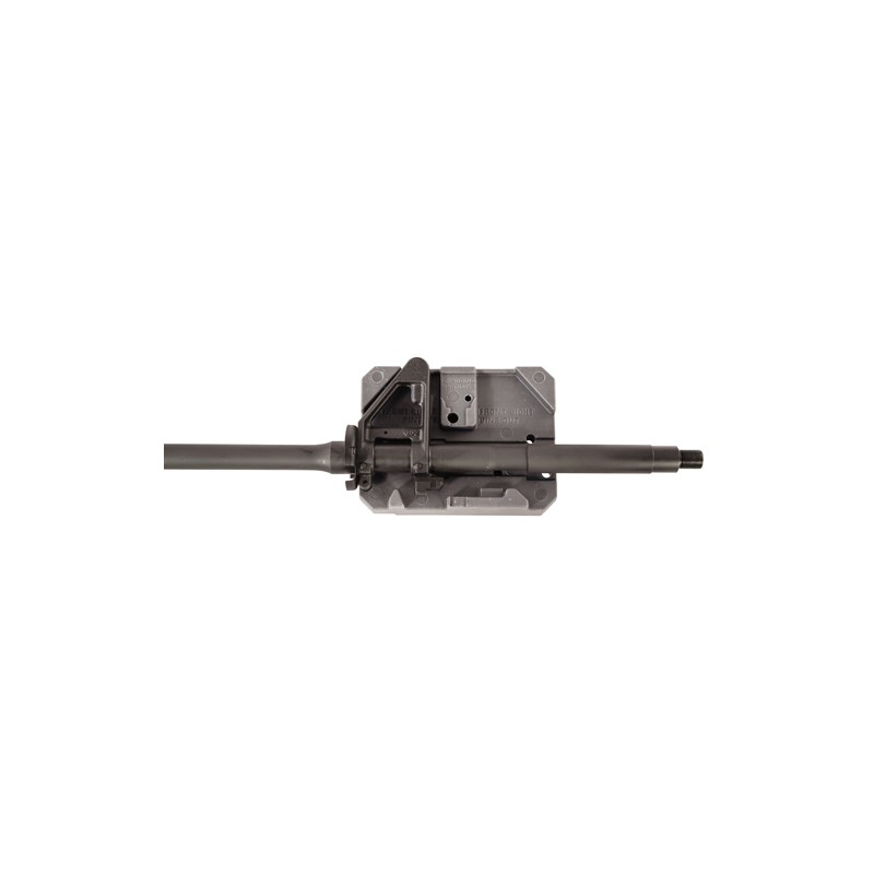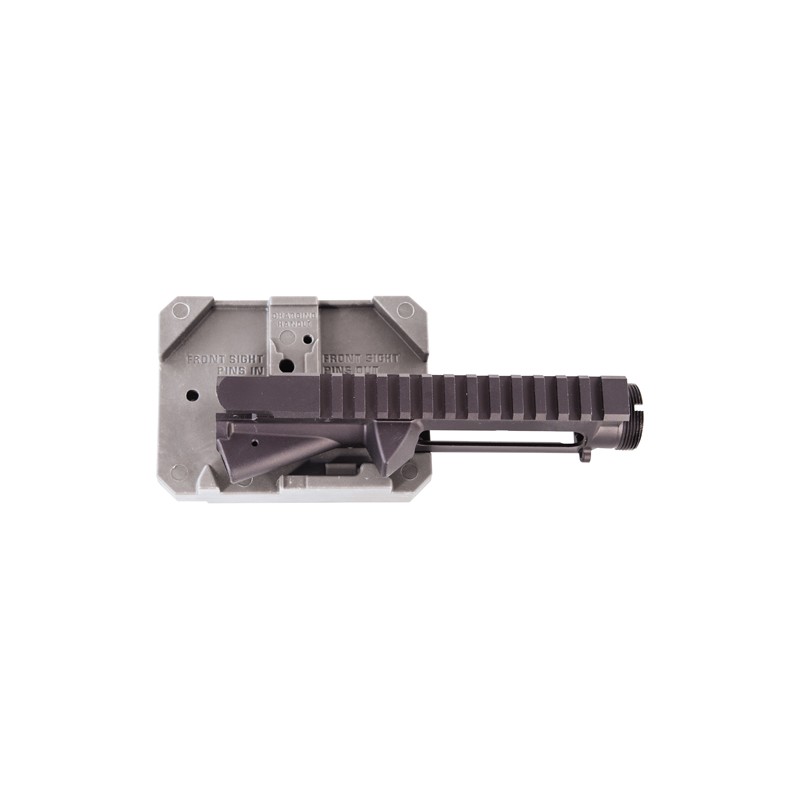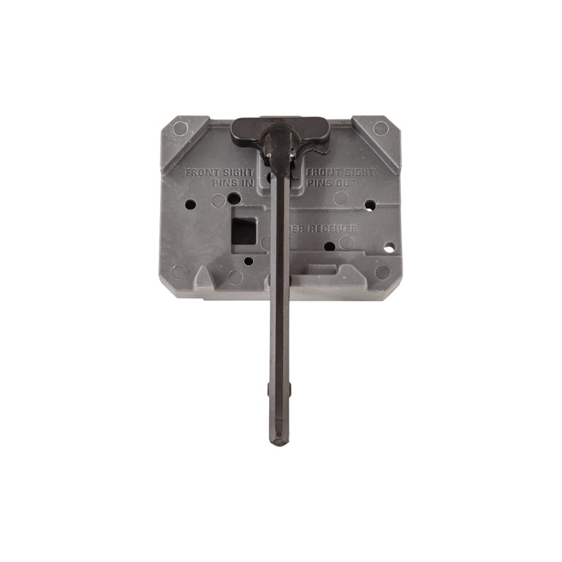 - Positions the upper receiver, lower receiver, front sight, and charging handle for maintenance or assembly