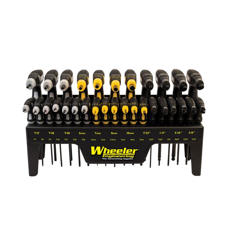 Complete your workbench with the Wheeler 30-Piece P-Handle Driver Set. The sleek molded stand design paired with its ability to be mounted on the wall allow for quick, convenient access to the SAE Hex, Metric Hex and Torx drivers. This screwdriver set is the perfect addition to any workshop.