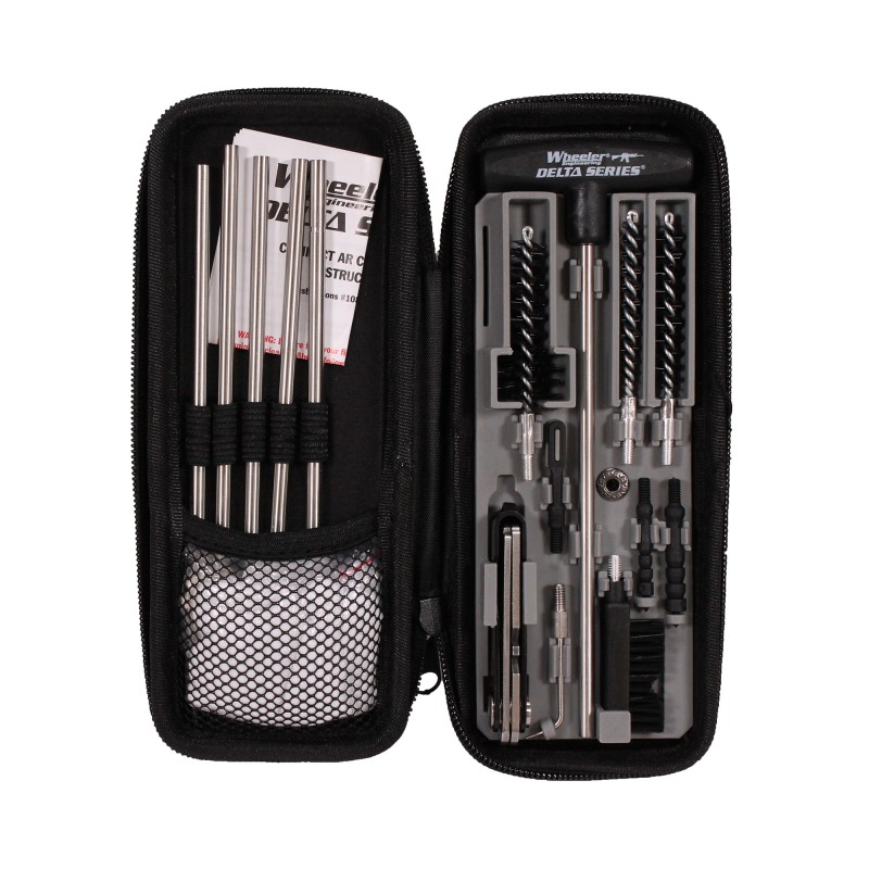 This all in one Cleaning Kit is the perfect companion for your AR 15 or AR 10 style firearm. Each item in the Compact Kit serves a specific function to ensure your firearm is clean and ready to shoot. The Kit comes with a variety of maintenance tools and attachments to clean the entire weapon system from chamber and barrel to fire control group. This is the ultimate range box kit, but would be just as at home on the work bench.