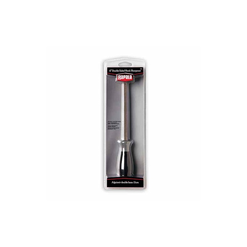 Round coarse file restores large and badly damaged hooks while the flat, fine diamond grit coated side hones hooks and knives to the razor-sharp edge required for large toothy gamefish. V-groove assures straight and accurate honing for the ultimate in cutting edge. Flat sides of fine surface are perfect for sharpening smaller hooks. Co-molded, ergonomic handle provides firm, yet comfortable slip-resistant grip.