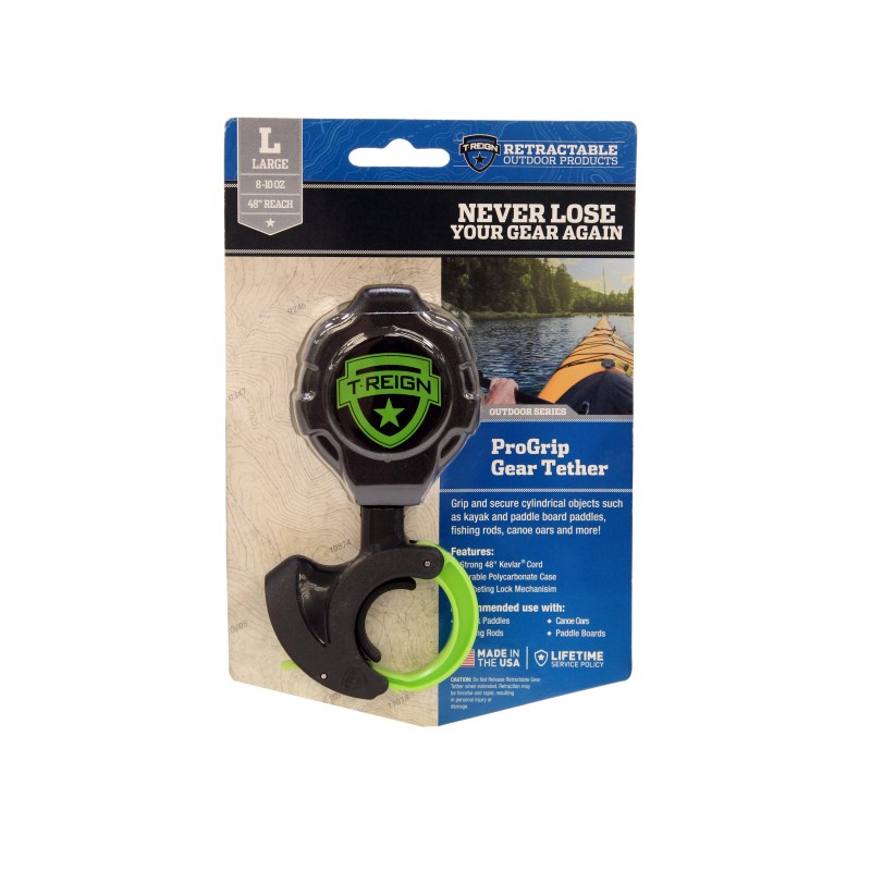 The ProGrip Gear Tether is great for gripping and securing cylindrical objects such as kayak and paddle board paddles, fishing rods, canoe oars and more!