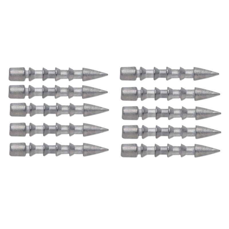 Conical ribs firmly anchor weight in place without damaging plastic. Thin profile offers angler ability to modify actions.