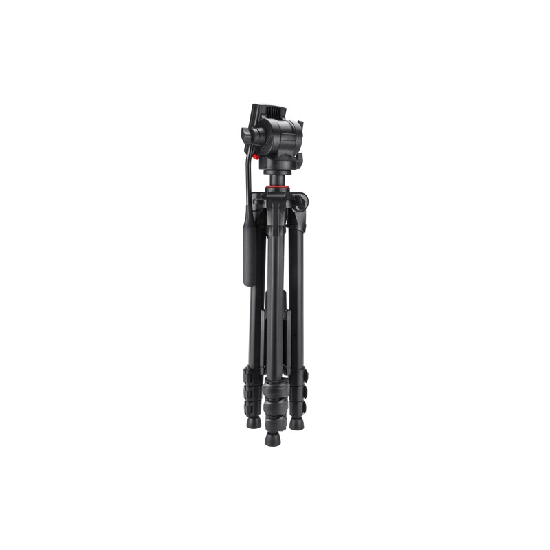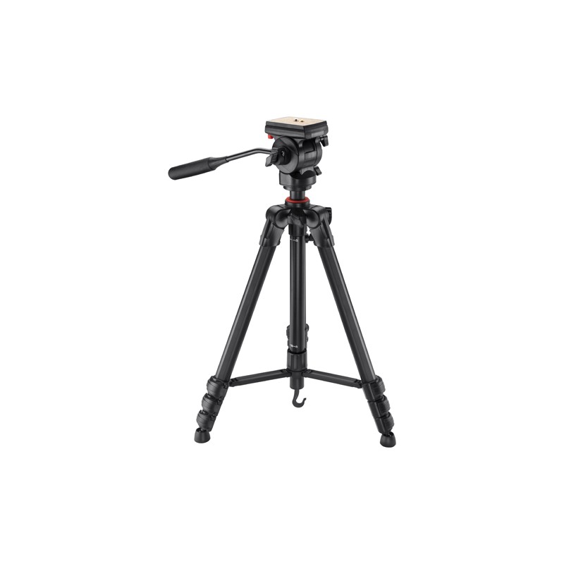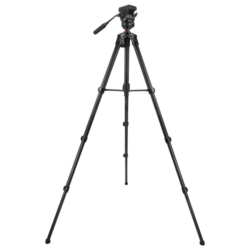 Tripod features an accessory hook that can be used to further stabilize the tripod in very windy conditions. Hang a counter weight (not supplied) onto the hook to stabilize your tripod. Extendable locking legs with rubber feet for stability.