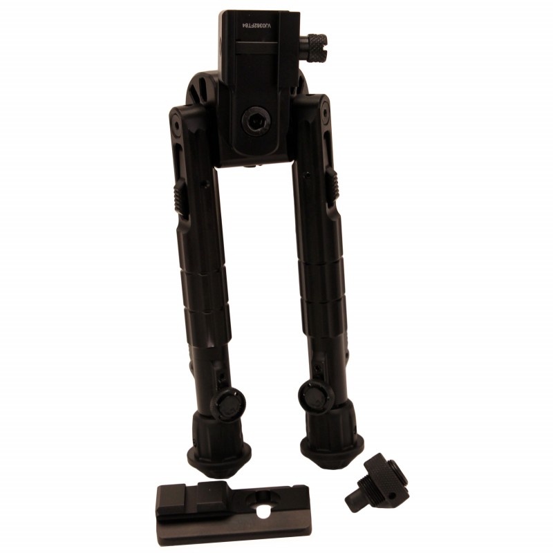 Leapers TL-BP01 UTG Heavy Duty Recon 360 Bipod is unique tension adjustable 360 degree panning bipod. UTG Recon 360 bipod hash multi-axial tilting base to achieve virtually any desired bi-pod adjustment. Versatile bi-directional bi-pod folding with Five posi-lock positions for convenient use on different firearms at varying angles. Metal construction with square steel cross bolt for superior hold on any picatinny rail. Innovative offset picatinny mounting deck that free'sup hand guard real estate. Fully adjustable legs with Five extend-able lengths lockable via thumb wheel for enhanced stability at multiple heights. Non-slip rubberized foot pads for any terrain or surface. Comes complete with swivel stud kit for swivel stud mounting.