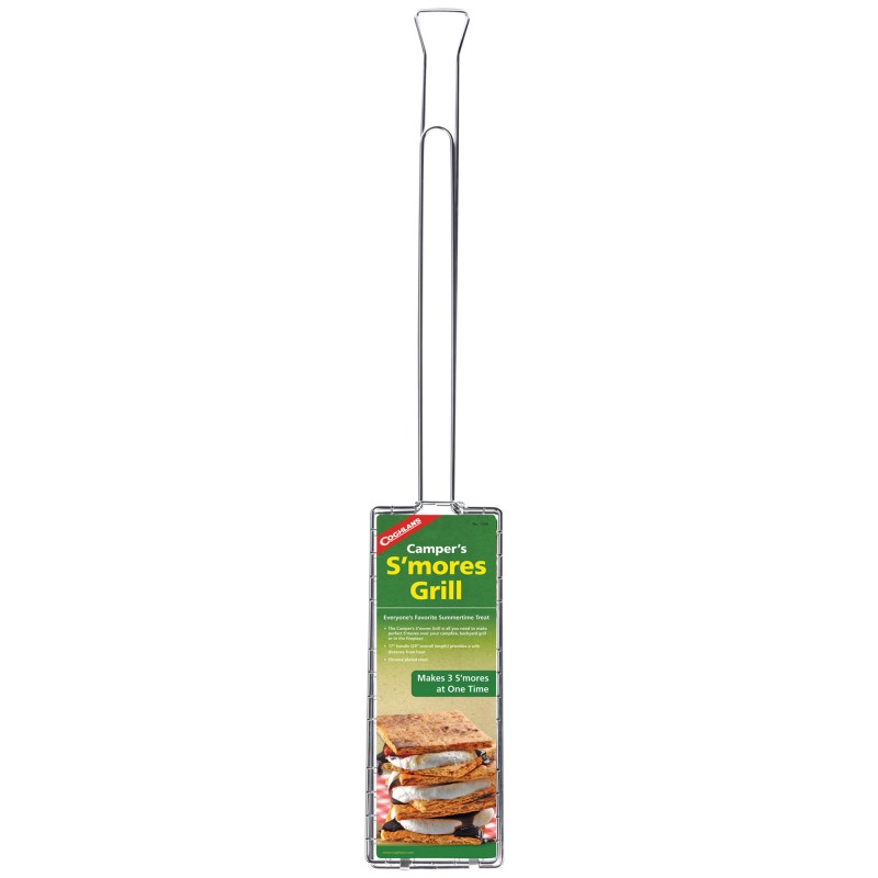 Everyone's favorite campfire treat. This compact grill is all you need to make perfect S'mores over your campfire or backyard grill. Put the S'mores into one of the three cooking cavities and hold above the flames until the graham cracker is lightly toasted. Features a sliding lock ring to keep the grill closed while cooking.